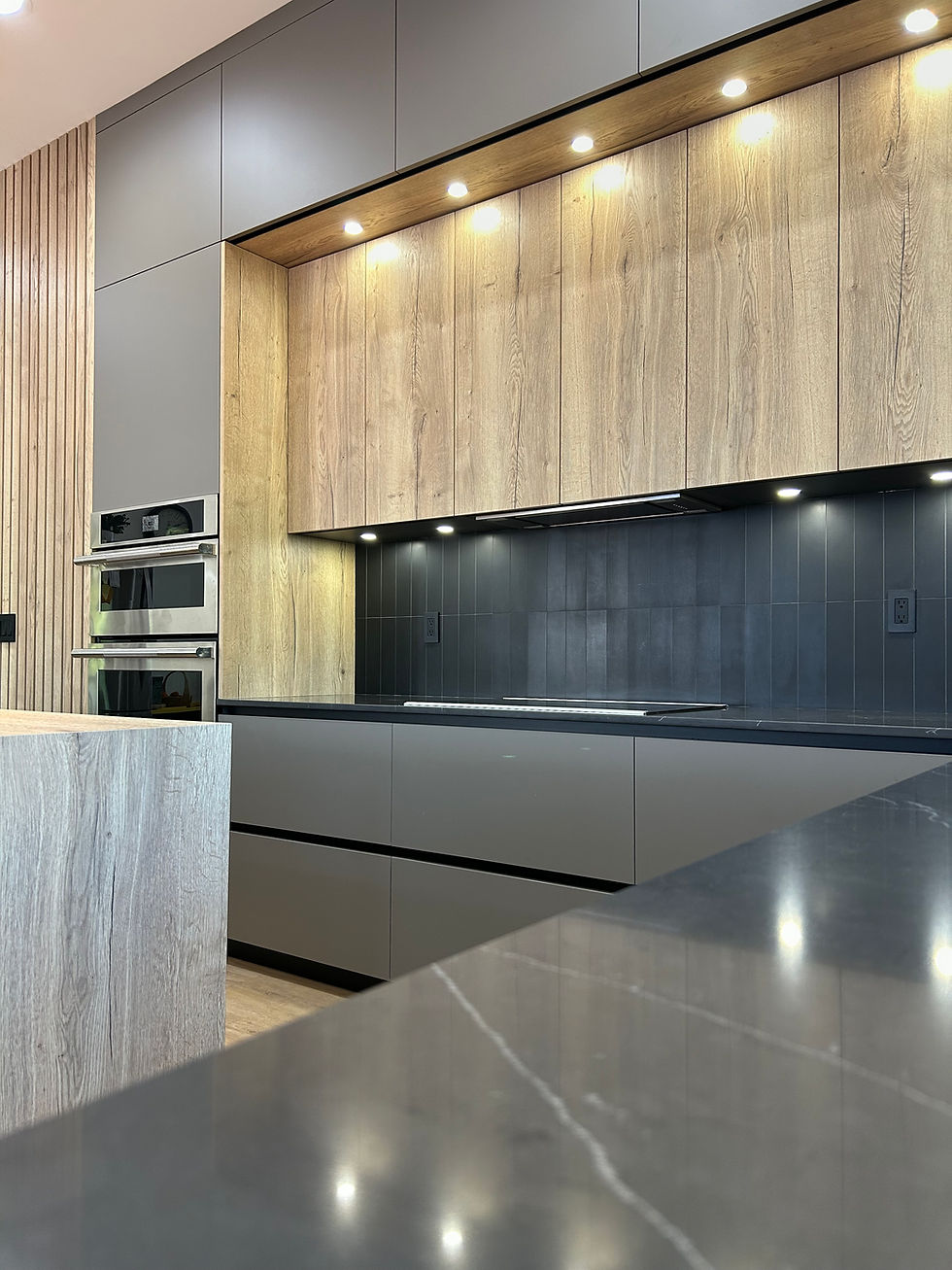 MODERN KITCHEN WITH WOOD & BLACK ACCENTS